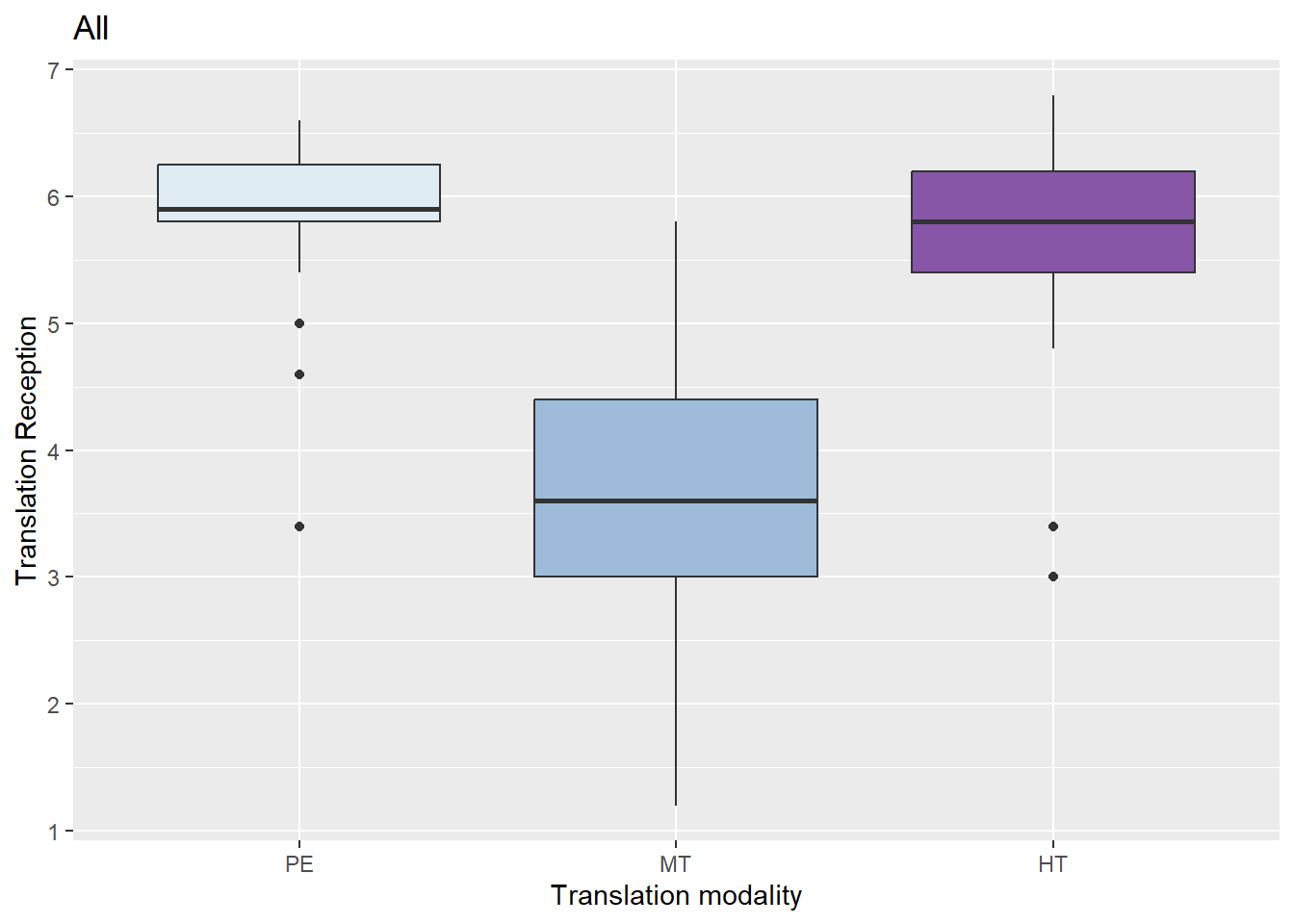 Figure 3 shows the results of the average scores given for this 5-item scale (α = 0.85) for translation reception (N = 119).