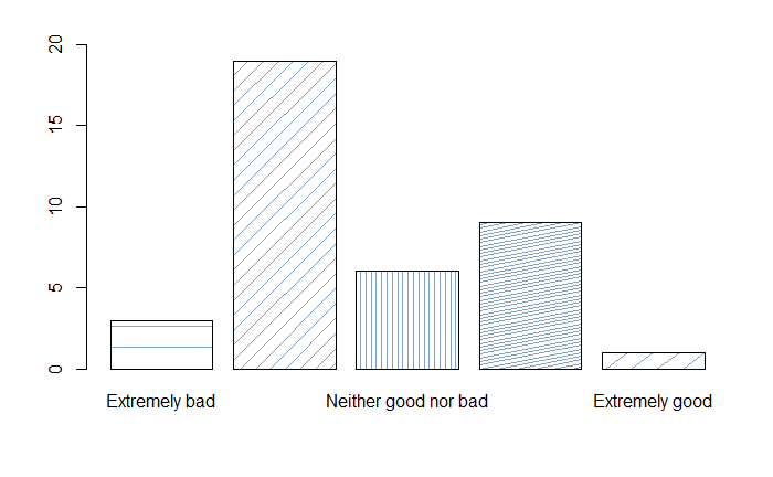 Figure 4 shows from left to right that 3 participants rated MT as Extremely bad; 19, the majority, rated MT as Slightly bad; followed by 6 as Neither good nor bad; then 9 as Slightly good, and 1 as Extremely good. The mean value for the quality of the MT output is 2.63.