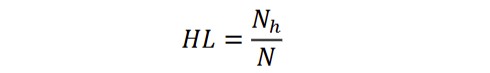 Hepax legomena are words that occur in a text only once (Popescu et al., 2009). Hepax Legomena Percentage (HL) is a ratio between the number of tokens (N) and number of hapax legomena (Nh) in a text, obtained as: