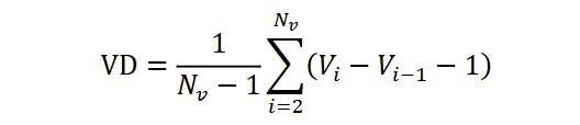 Verb Distances (VD) count how many tokens on average there are between two successive verbs, computed as (Kubát et al., 2014):