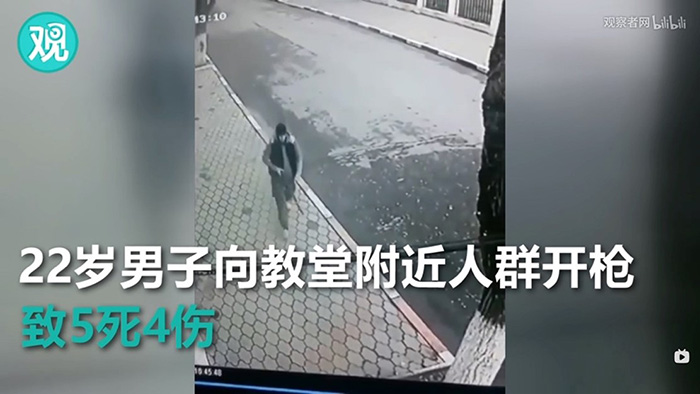 Figure 3. Screenshot from “Shooting in Dagestan, Russia, Five Deaths and Four Injuries.” English translation of the Chinese subtitles: 22-year-old man shoots into the crowd near a church, killing five and injuring four.