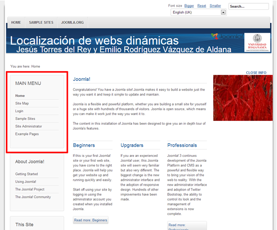 Todas las ilustraciones que hemos mostrado en este artículo se han creado mediante el WCMS Joomla! 3.0.3.
