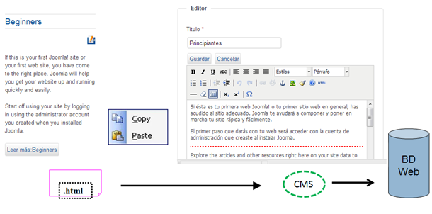 Ilustración 8. copiado y pegado del contenido HTML mediante el WCMS