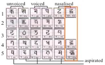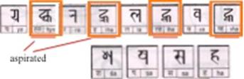Figure 3. Prachalit in Vargs, highlighting the ‘extra’ aspirated (breathy) consonants (adapted by the author from Shakya 2002: 7)
