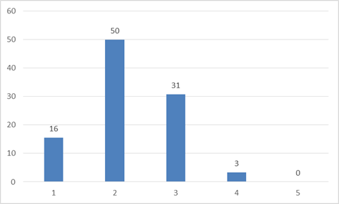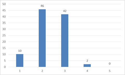 When asked about translators’ visibility in society, the students’ estimates were on the low side as Figure 4 below shows. The mean was 2.22 and the median/mode was 2.