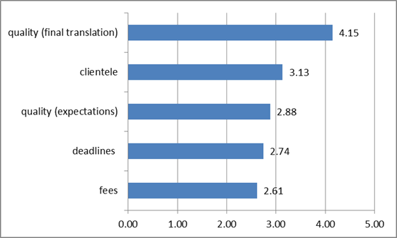 The high score of the quality of the finished translation may reflect the fact that finalising a translation is that aspect of translators’ work the students become the most familiar with during their studies. It could also signal confidence: the students trust that, as professional translators, they will be able to control the quality of their output. In this respect, the results are similar to those of Katan’s survey (2009: 135), where some 50% of the translator respondents believed they have a high degree of control over the final product.