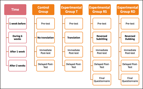 We formulated the following research questions: Can reverse subtitling and dubbing raise Italian ESL learners’ pragmatic awareness in written productions more than reverse translation alone? If the answer to this question is yes, then do reverse subtitling and reverse dubbing provide learners with equal advantages or is one more effective than the other? And, finally, which one is perceived by Italian ESL learners as being more effective?