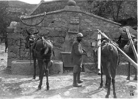 Figure 2. The trilingual Austro-Hungarian fountain. Kobarid Museum.