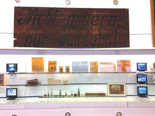 One example of an object whose meaning provides this effect is a large wooden board that the withdrawing Germans troops left on the damaged facade of Péronne’s town hall in 1917 with the inscription “Nicht ärgern, nur wundern”.3 These words were first understood by the British troops in relation to the apparent German destruction as they entered Péronne as “Don’t wonder, just admire” but recent interpretations have pointed in the more cynical direction of a reference to amazement in the face of the atrocities of war. John Horne and Jay Winter write about this panel in the museum catalogue in the following terms:
