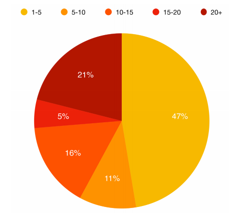 La tranche d’âge des membres de la communauté varie entre 29 et 79 ans, avec une moyenne de 43 ans. Quant au type de formation, Courrier des Balkans réunit huit membres qui n’ont pas de formation linguistique, littéraire ou traductologique : ils sont diplômés en sciences politiques, journalisme, relations internationales, histoire, philosophie, droit ou anthropologie. Les autres membres enquêtés (11 sur 19) ont des diplômes de master en langue et littérature française, voire des doctorats en sciences du langage, complétés pour certains par des formations universitaires en communication, journalisme et projets interculturels. Parmi les professions indiquées, huit membres ont indiqué le journalisme. Sur neuf membres qui sont traductrices et traducteurs, trois sont en même temps enseignants de langue et deux sont journalistes. Deux personnes ont indiqué des engagements dans le cadre de divers projets culturels gouvernementaux ou non gouvernementaux. La durée de l’expérience professionnelle des membres varie entre cinq et 45 ans, tandis que la durée moyenne de leur activité au sein du Courrier des Balkans dépasse 10 ans (10,36). Cela démontre un fort attachement à la communauté et dépasse sept ans (7,26), même si on exclut un cofondateur et trois traductrices qui font partie de la communauté depuis ses débuts en 1998. L’image 2 présente la durée de fidélité au groupe par tranches d’âge.