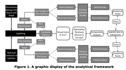 Approach means “a way of considering or doing something” (Cambridge Dictionary Online), and a subtitling approach refers to a way of considering the most intrinsic mechanisms of making subtitles (subtitling). Intrinsically, subtitling means to use the available semiotic submodes attached to a subtitle to represent audiovisual texts selectively as the filmic narrative continuously unfolds with the storyline within the frame of the screen (Pérez-González 2007). Subtitles, thus, are somewhat limited by this temporally and spatially confined storytelling. In addition, as a form of translation, subtitling is also compromised by the dissimilarity between the source and target.