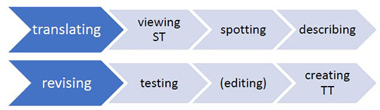 Figure 4. The translation and revision phases with their subphases in team AD (ST =source text, TT = target text).
