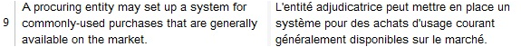 Later in the document, the sentence “It is therefore necessary to define a completely electronic dynamic purchasing system for commonly-used purchases” is found. Even if there is no segment-level TM match for it, the TM-TDB technique would identify ‘dynamic purchasing system’ as a complete segment in the TM, then recall and propose the fragment translation, ‘Système d’acquisition dynamique,’ as shown in Figure 2.