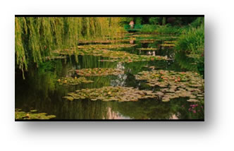 AD: Film „O północy w Paryżu” otwiera sekwencja paryskich widoków: mostów nad Sekwaną, zatłoczonych bulwarów i znanych atrakcji turystycznych. Następnie akcja przenosi się do ogrodu przy domu Claude’a Moneta, gdzie dwoje turystów z Ameryki — Gil i jego narzeczona Inez — rozmawia na drewnianym mostku. Przed nimi na wodzie unoszą się kępy nenufarów. Nad taflą stawu wiszą jasnozielone gałęzie wierzb płaczących, które odbijają się w wodzie. Całość przypomina obraz Claude’a Moneta — „Nenufary”.