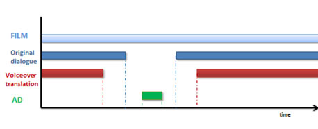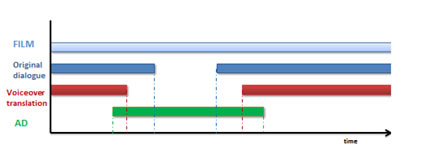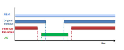 Figure 1. Optimum synchronisation of AD with the original dialogue and VO translation