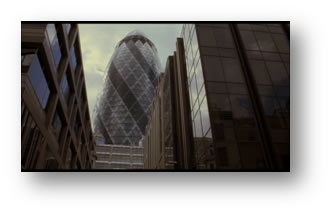 To give another example, in Matchpoint, the main character, Chris, is offered a position in his father-in-law’s office located in the famous Swiss Re building in London, also known as the Gherkin, designed by Norman Foster. This prestigious location in the London City may not be well known to all Polish viewers, so in the AD script the explicitation strategy was used, supplementing the name with a more explanatory term (see Figure 8).