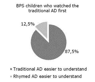 Then, the children were asked with which version of AD (rhymed or traditional) the film was easier to understand.