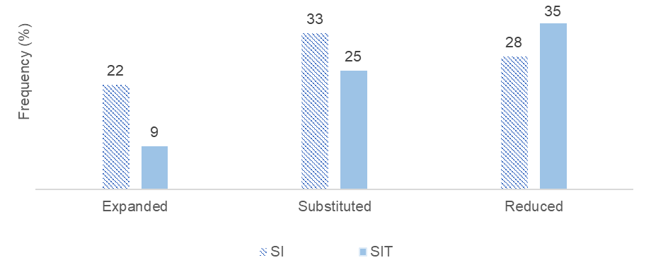 Figure 3. Comparison of substituted and reduced renditions in SI and SIT.